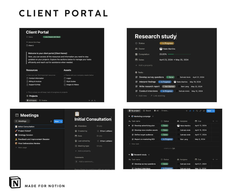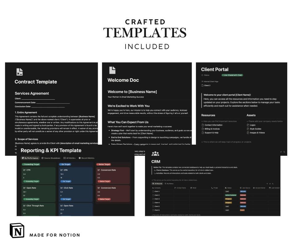 Requires free Notion account. This package is a plug and play system designed to take the guesswork out of building a high end client onboarding process. These templates should empower business owners at every stage, whether you're just starting or looking to elevate your onboarding process to the next level. Inside, you'll find professionally crafted templates to position yourself as a sought-after creative professional.